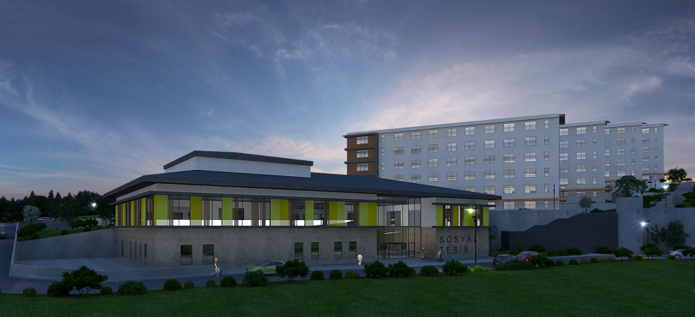 4 Adet Yurt Binası - 1 Adet Sosyal Tesis Binası - Çevre Düzenleme ve Alt Yapı İşleri Toplam Kapalı İnşaat Alanı 27.543,42 m2 Betonarme (Karkas) Yapı